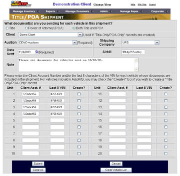 title- or POA-only records to ship documents to auction ahead of vehicle.